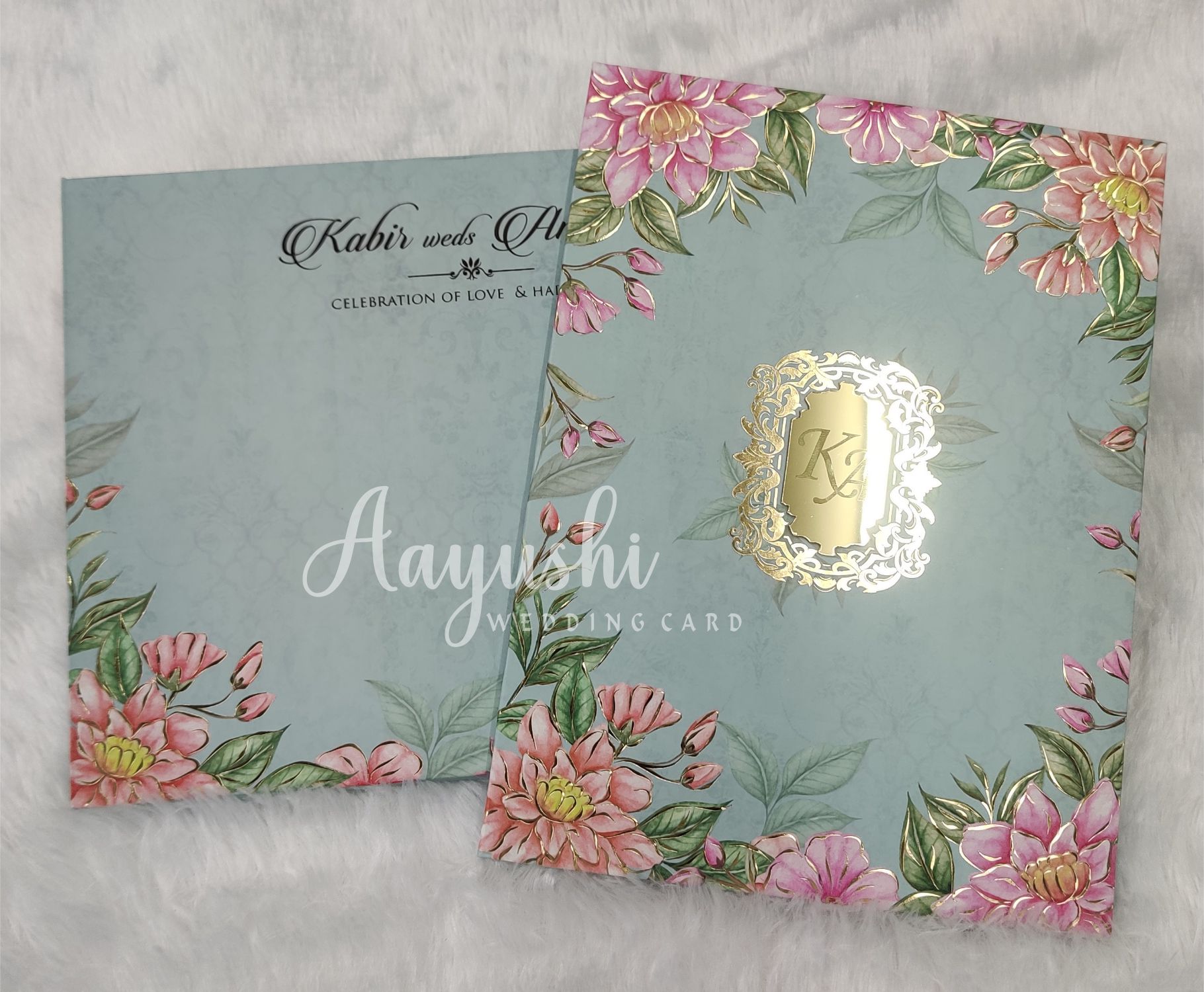 – HEAVY WEIGHT FLORAL WEDDING CARD WITH NAME PLATE