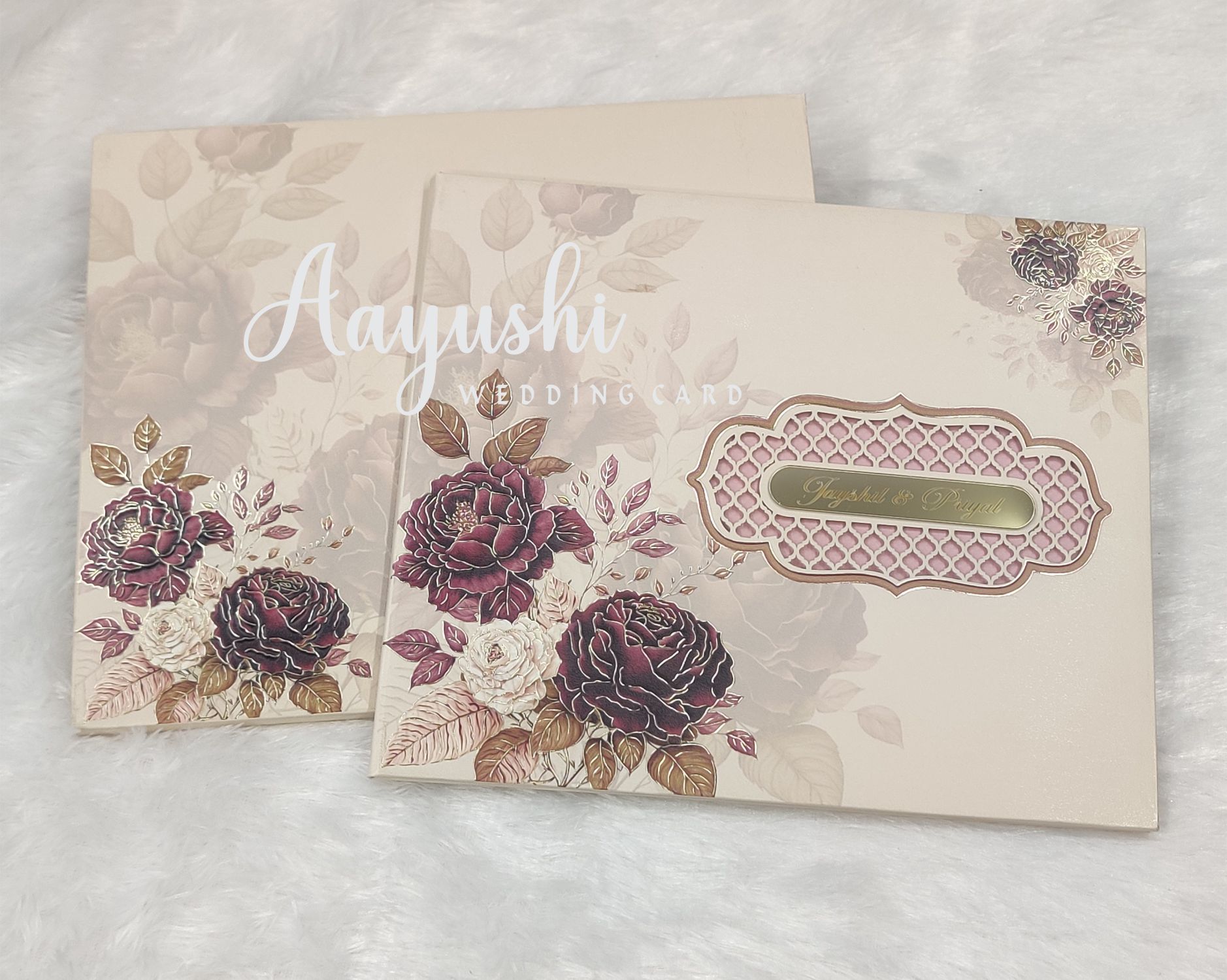 – HEAVY WEIGHT FLORAL WEDDING CARD WITH ACRYLIC PLATE & THICK INSERTS.