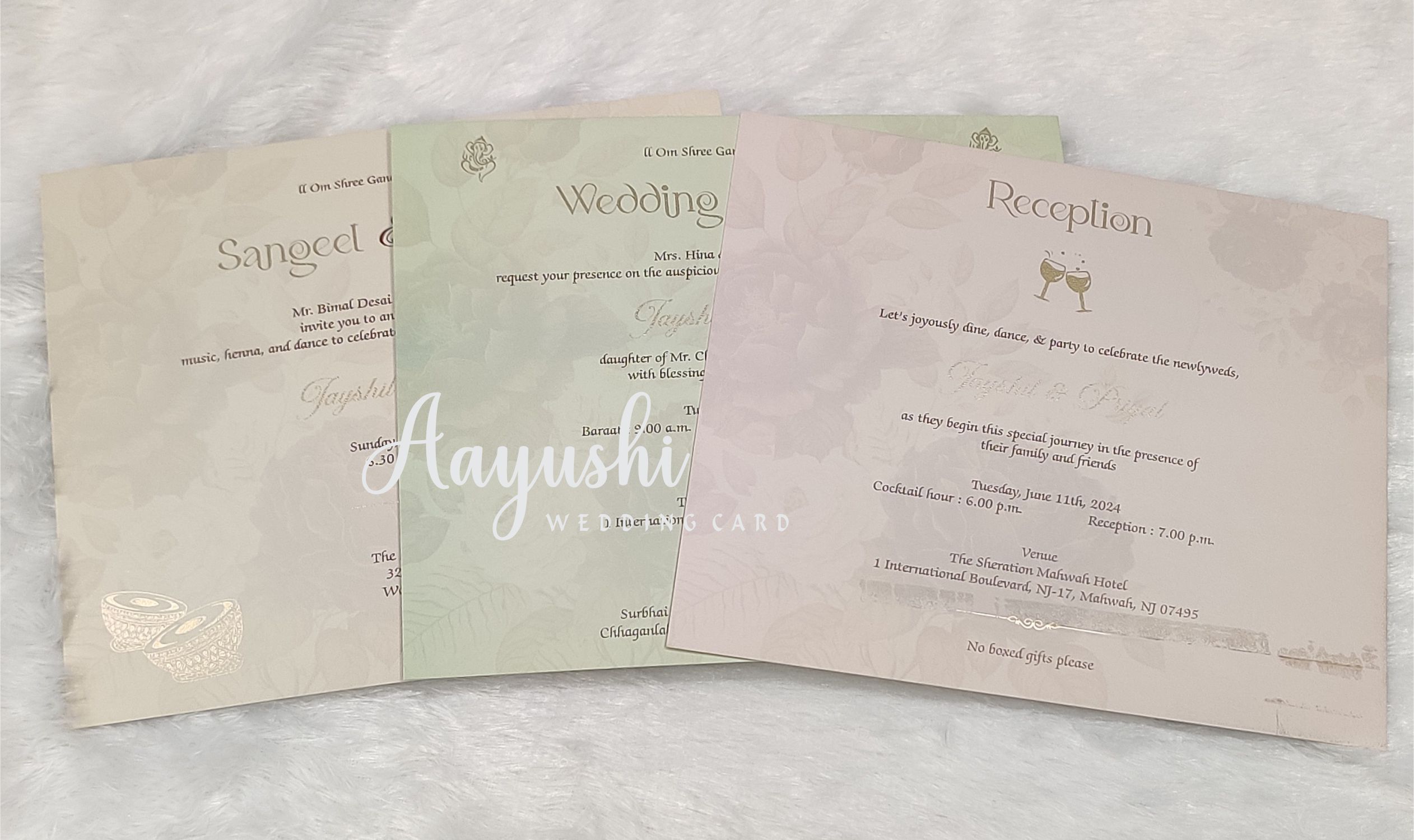 HEAVY WEIGHT FLORAL WEDDING CARD WITH ACRYLIC PLATE & THICK INSERTS.